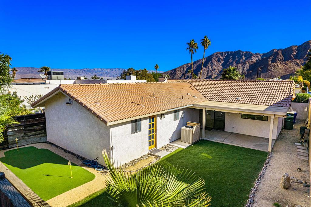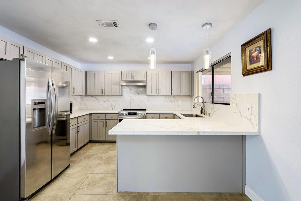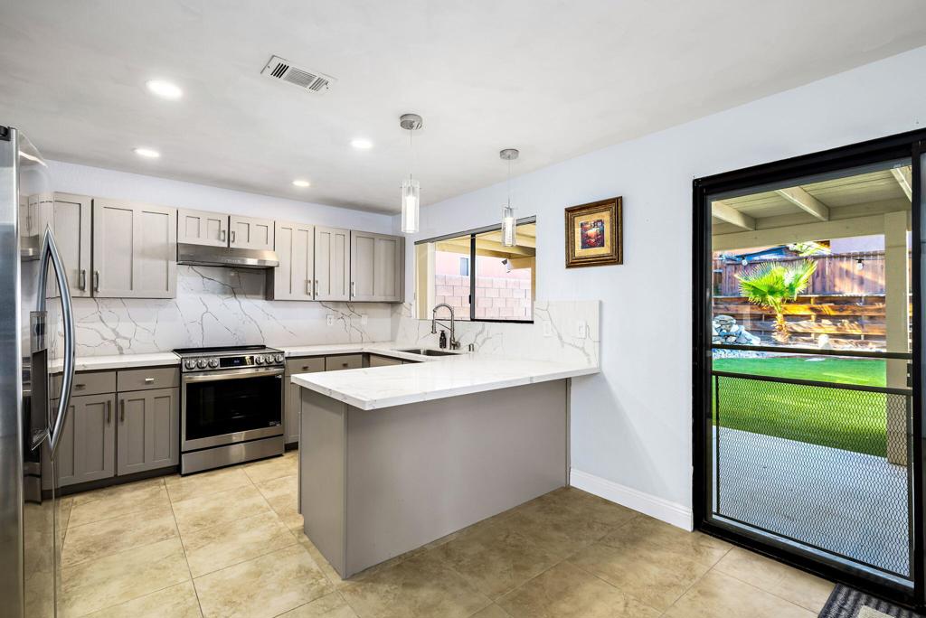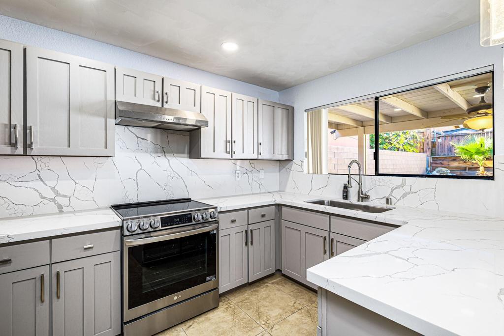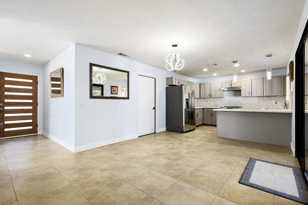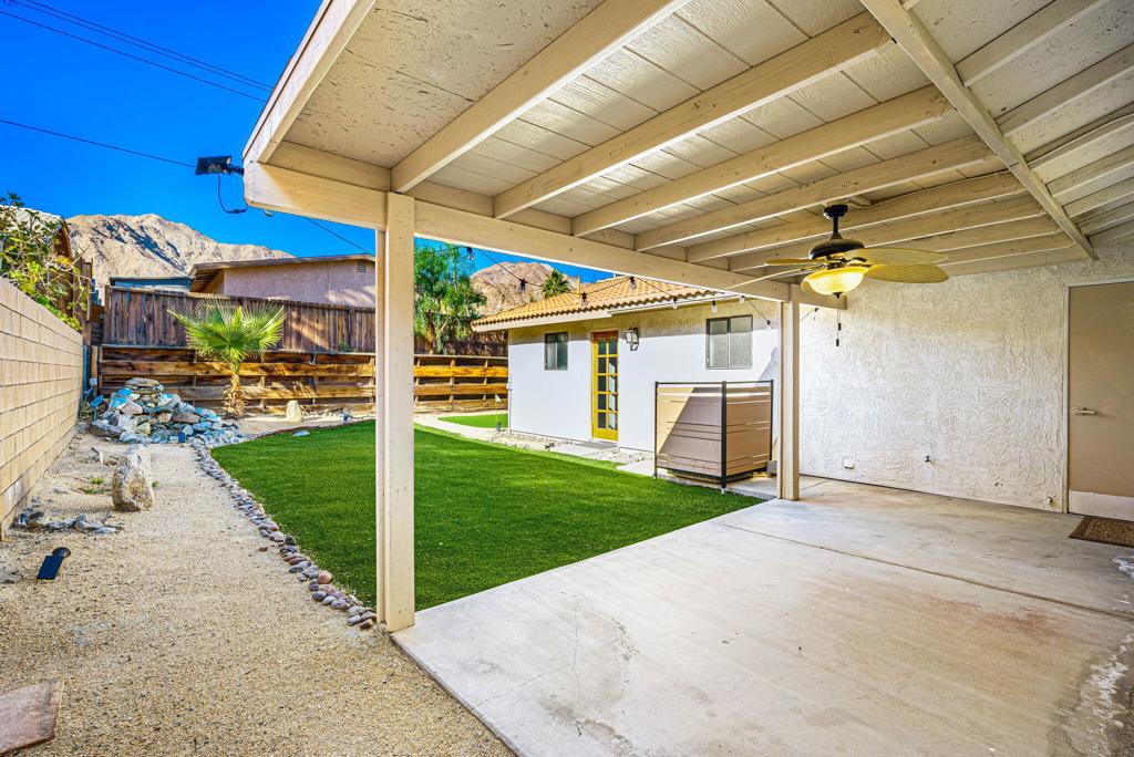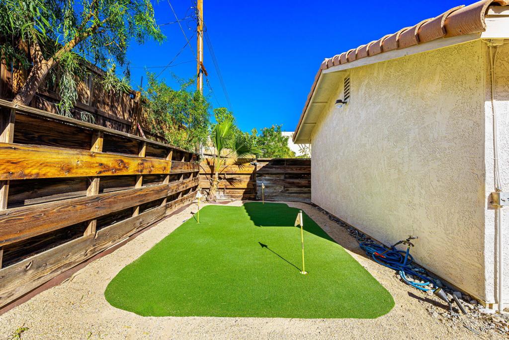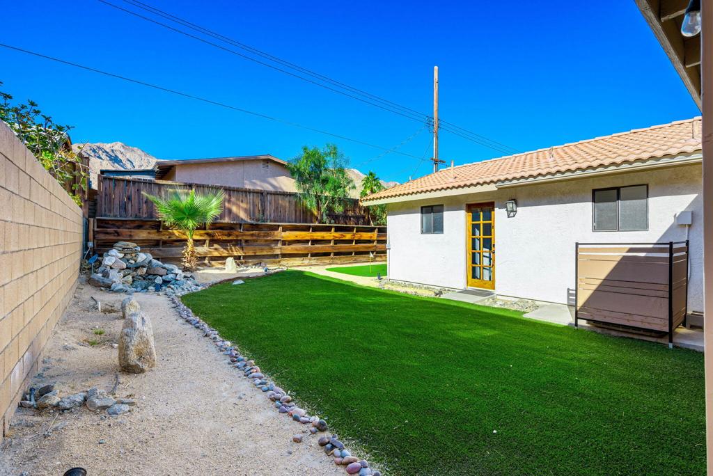 LEASE AVAILABLE IMMEDIATELY! (1 year minimum). Updated home in upper La Quinta Cove with beautiful mountain views...4 homes from the top! This 3 bedroom/2 bathroom home has an open floor plan that features a living room with new electric fireplace and wall-mounted flatscreen TV, and a dining area off the kitchen. Freshly updated with new neutral tile (carpet in bedrooms), quartz countertops, contemporary ceiling fans, vessel/bowl bathroom sinks, new showers and more! Access to the patio off of the kitchen/dining area. The backyard is enclosed/fenced for your privacy (good for pets!) and includes your personal putting green. Primary bedroom is en suite with a new shower and sinks...and has access to the backyard. There are two guest rooms sharing a guest bathroom with tub & shower. Attached 2-car garage has direct access to the home. Great proximity to shopping & dining in Old Town La Quinta and all the great hiking trails this area has to offer! Home is unfurnished. Appliances included are: kitchen refrigerator, stove, dishwasher, countertop microwave, and washer & dryer. There is electric only in home, no gas or propane. Tenant pays all utilities - water, electric and cable/internet. Landlord pays gardener.