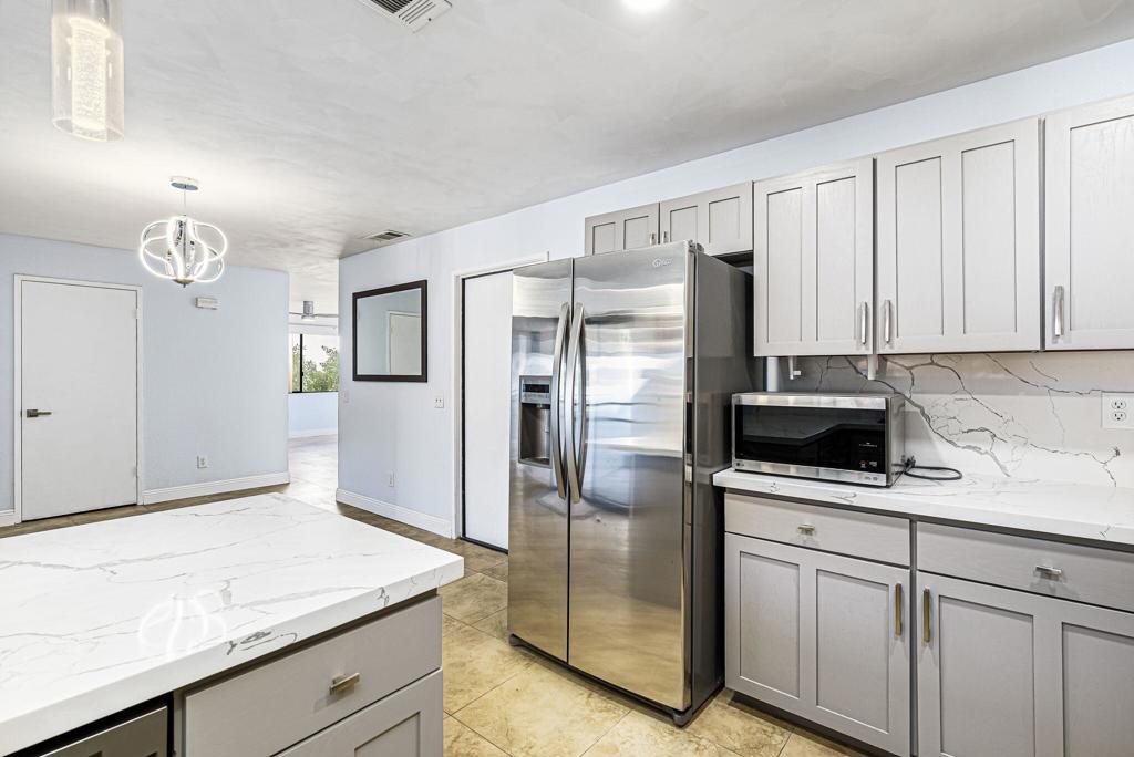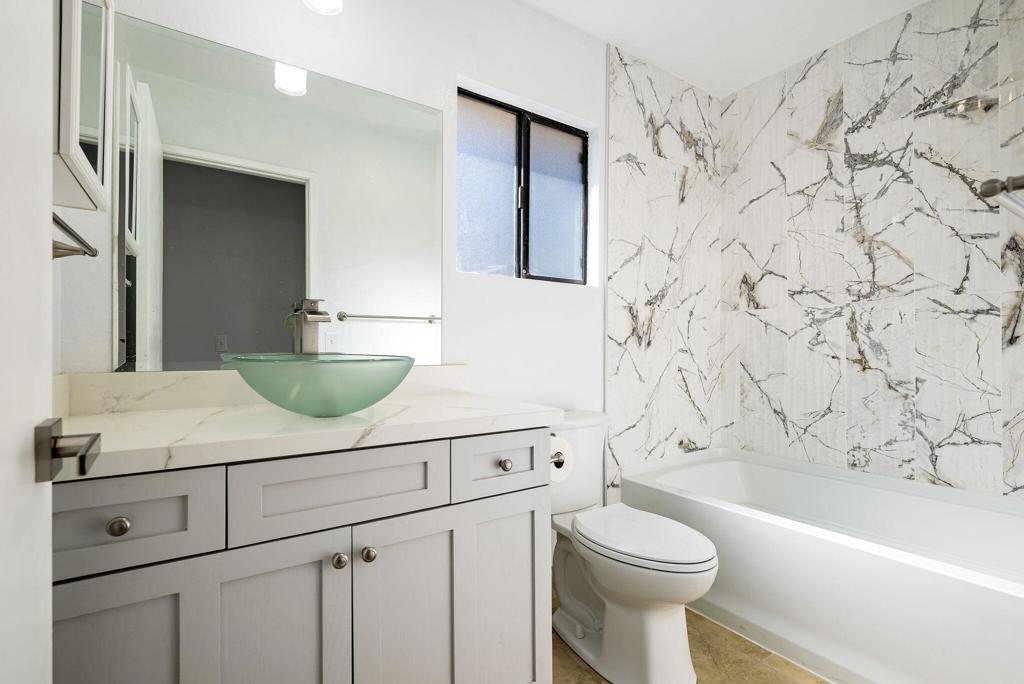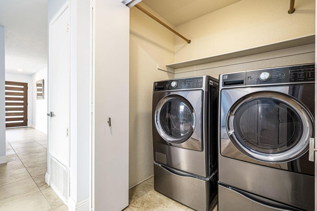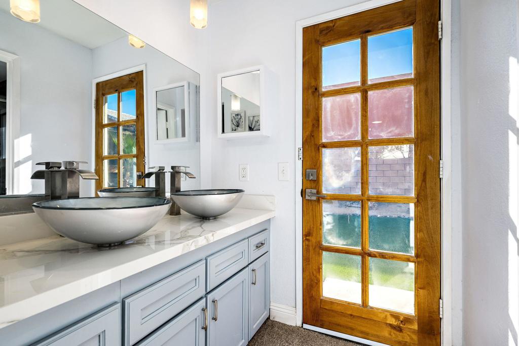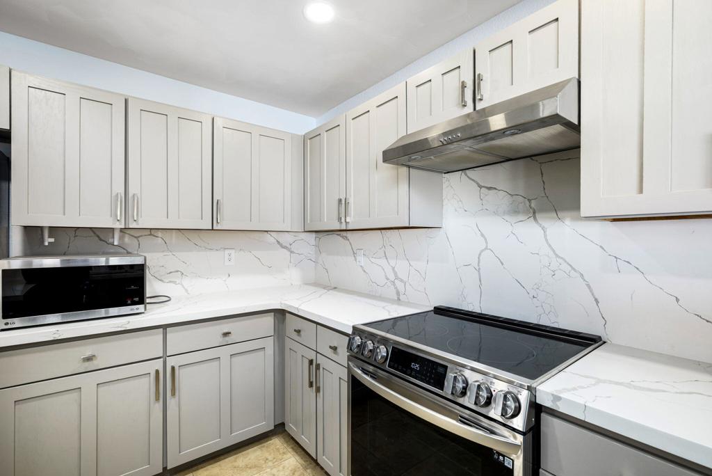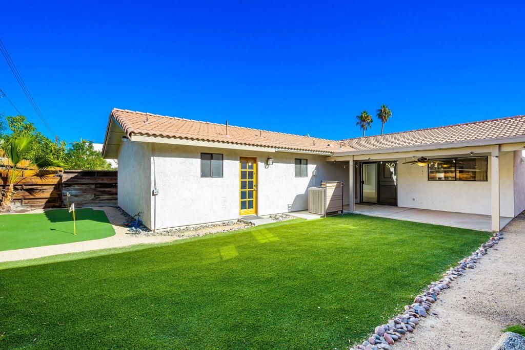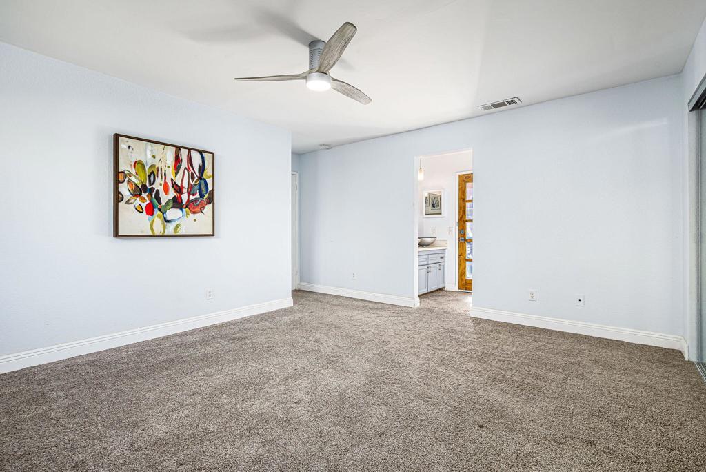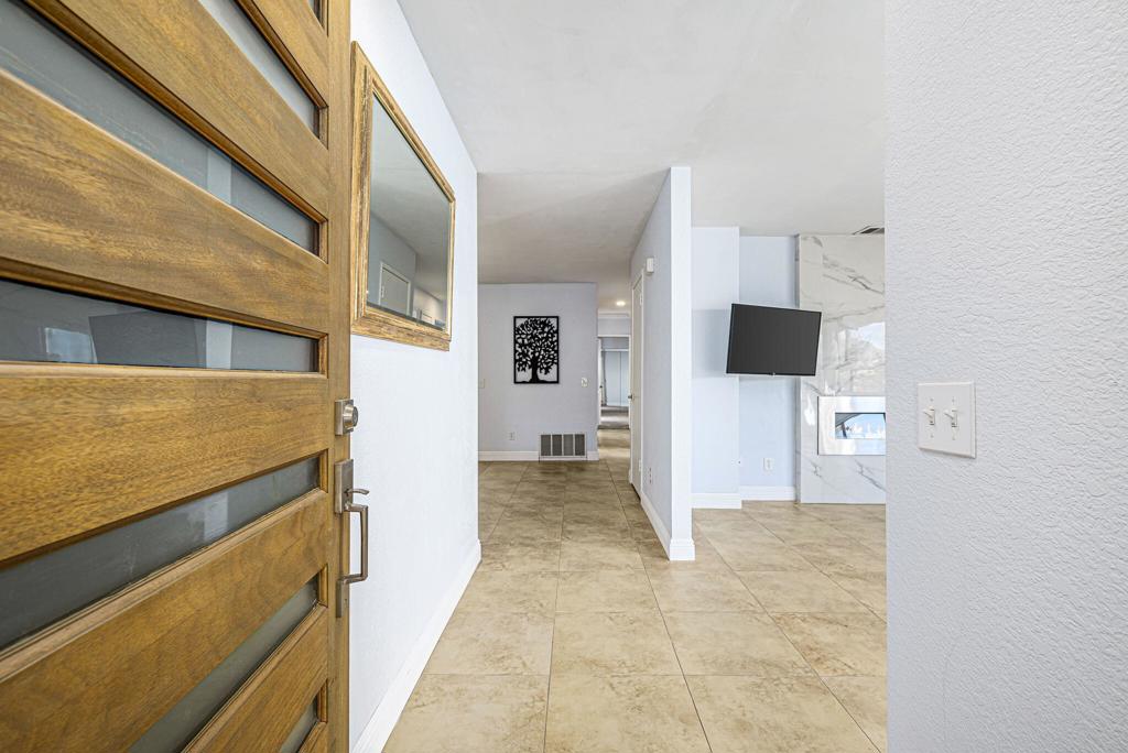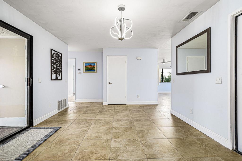 LEASE AVAILABLE IMMEDIATELY! (1 year minimum). Updated home in upper La Quinta Cove with beautiful mountain views...4 homes from the top! This 3 bedroom/2 bathroom home has an open floor plan that features a living room with new electric fireplace and wall-mounted flatscreen TV, and a dining area off the kitchen. Freshly updated with new neutral tile (carpet in bedrooms), quartz countertops, contemporary ceiling fans, vessel/bowl bathroom sinks, new showers and more! Access to the patio off of the kitchen/dining area. The backyard is enclosed/fenced for your privacy (good for pets!) and includes your personal putting green. Primary bedroom is en suite with a new shower and sinks...and has access to the backyard. There are two guest rooms sharing a guest bathroom with tub & shower. Attached 2-car garage has direct access to the home. Great proximity to shopping & dining in Old Town La Quinta and all the great hiking trails this area has to offer! Home is unfurnished. Appliances included are: kitchen refrigerator, stove, dishwasher, countertop microwave, and washer & dryer. There is electric only in home, no gas or propane. Tenant pays all utilities - water, electric and cable/internet. Landlord pays gardener.
